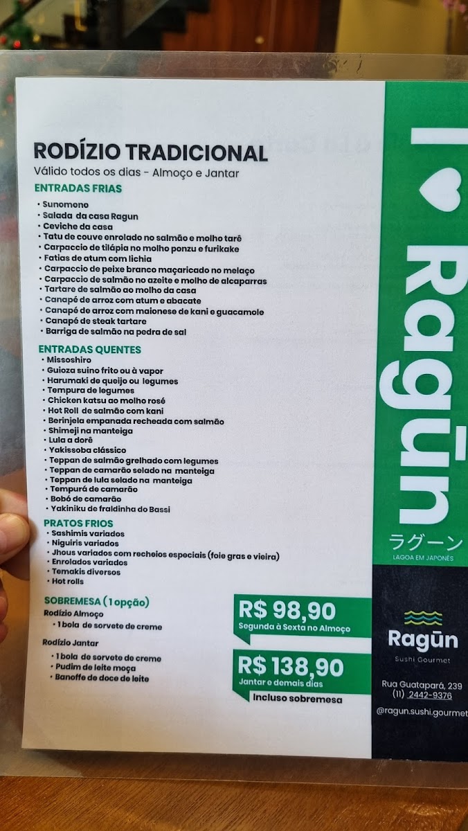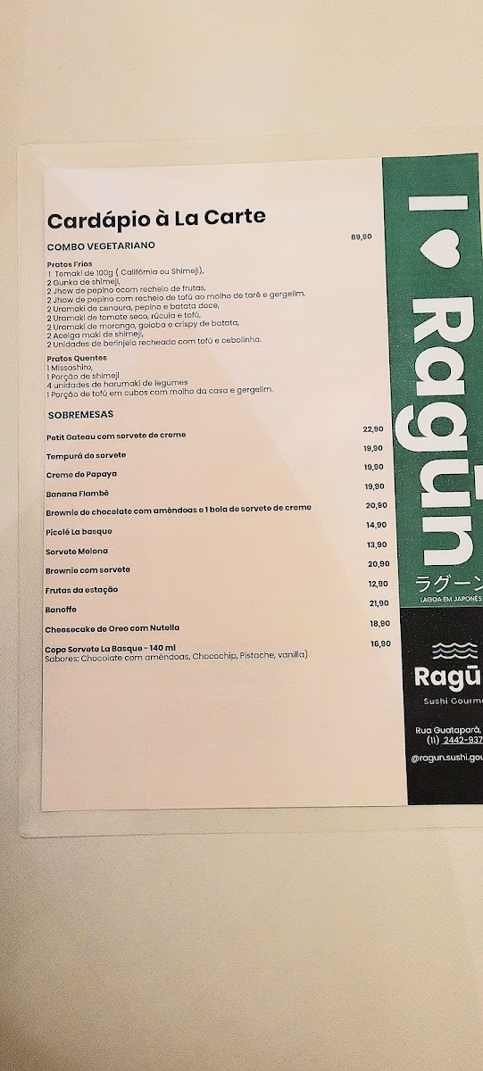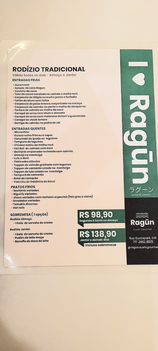 Introducing Ragun Sushi Gourmet Conceição, located in the heart of São Paulo, this sushi restaurant offers a delightful fusion of traditional and contemporary Japanese cuisine. The menu showcases a variety of combinations that cater to sushi enthusiasts, such as the enticing "Combinado Jizô," featuring a generous selection of sashimis, uramakis, and hot rolls. With prices starting as low as R$89.90, each dish promises freshness and flavor.